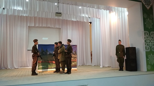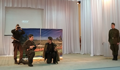 18.03.2020 года школьная театр-студия "Вдохновение", состоящая из учителей и учащихся МОБУ СОШ №6 приняла участие в городском конкурсе театрализованных постановок «Сквозь года звенит Победа», посвященном 75-летию Победы, с мини-спектаклем по произведению А. Твардовского "Василий Тёркин". Звёздный состав: - Байков Данил, Саиткулов Денис, Хусаинов Денис, Кудряшова Оля, учащиеся 9а класса; - Цыганков Максим, Калинин Назар, 10а класс; - Гайнуллин Идель, 8в класс - Подгорбунских Михаил, 6б класс; -Фатхутдинов Шамиль Салаватович, учитель технологии, -Алтыншина Регина Раилевна, учитель математики, - Сагитова Лилия Юрьевна, учитель информатики; - Боркина Галина Николаевна, учитель русского языка и литературы, режиссёр, сценарист, руководитель театр-студии; - Абзгильдина Гульнара Булатовна, зам директора по воспитательной работе, продюсер; - Марков Николай Иванович, музыкальный руководитель; По результатам конкурса, наш коллектив занял почетное 1-е место. Поздравляем с победой наших актеров, гордимся и радуемся вместе с вами! #школа6 #Сибай #театр #Вдохновение